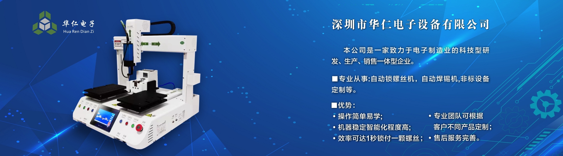 深圳市華仁電子設備有限公司是一家致力于電子制造業(yè)周邊設備的科技型研發(fā)、生產、銷售一體的企業(yè),專業(yè)從事:自動鎖螺絲機;自動焊錫機;非標設備定制機等,公司長期以來在行業(yè)中積累了豐富的經驗,擁有專業(yè)的研發(fā)、技術、銷售支持工程團隊、各高級技術人才為客戶提供優(yōu)質產品和服務,同時不斷吸取國內外先進技術,更準確及時地為客戶提供優(yōu)質,性價比高的產品、公司以專業(yè)的售前、售中、售后服務贏得了客戶的信賴和好評,為客戶提供先進自動化設備一體式解決方案、